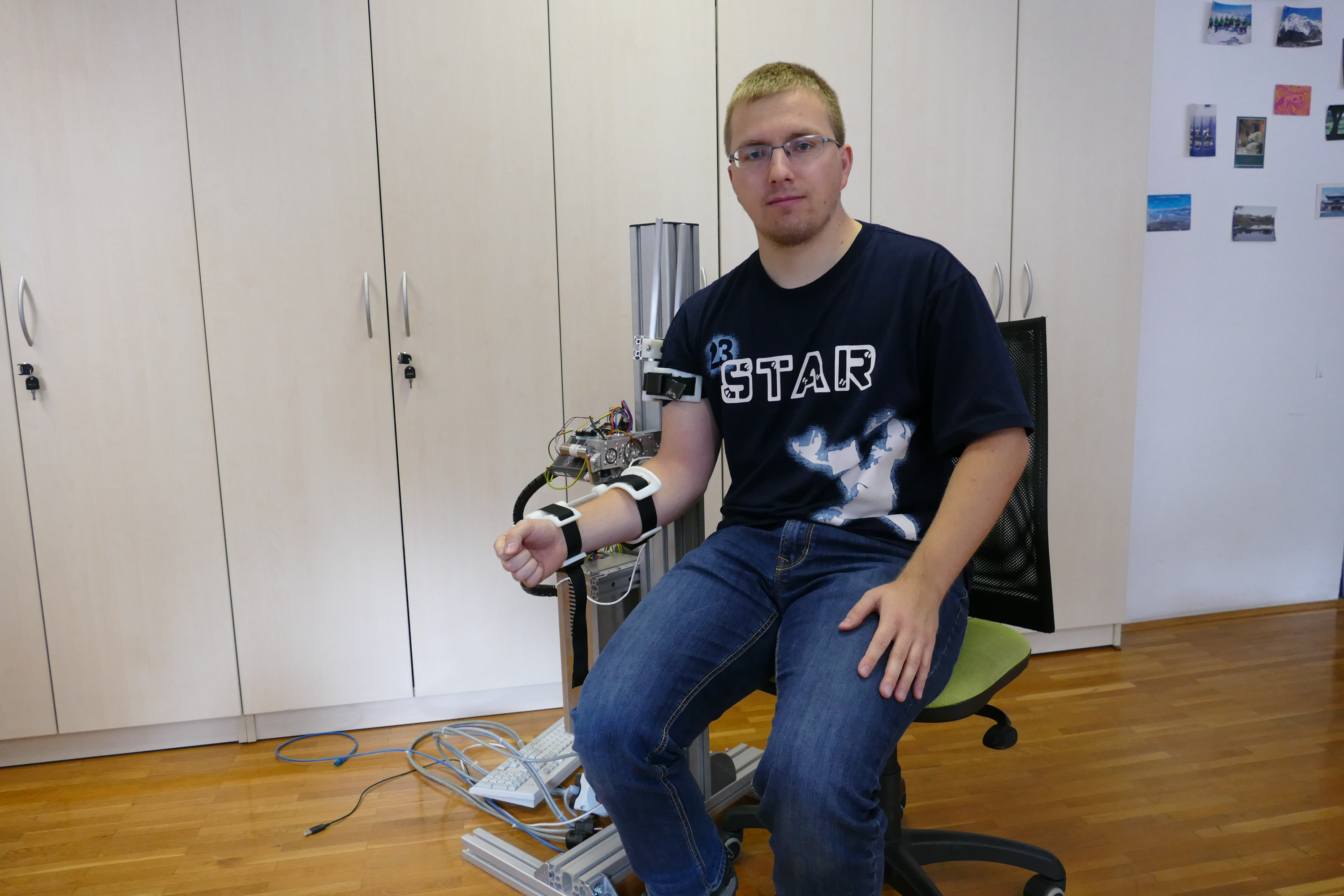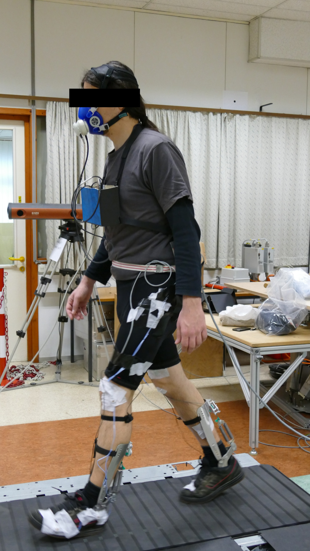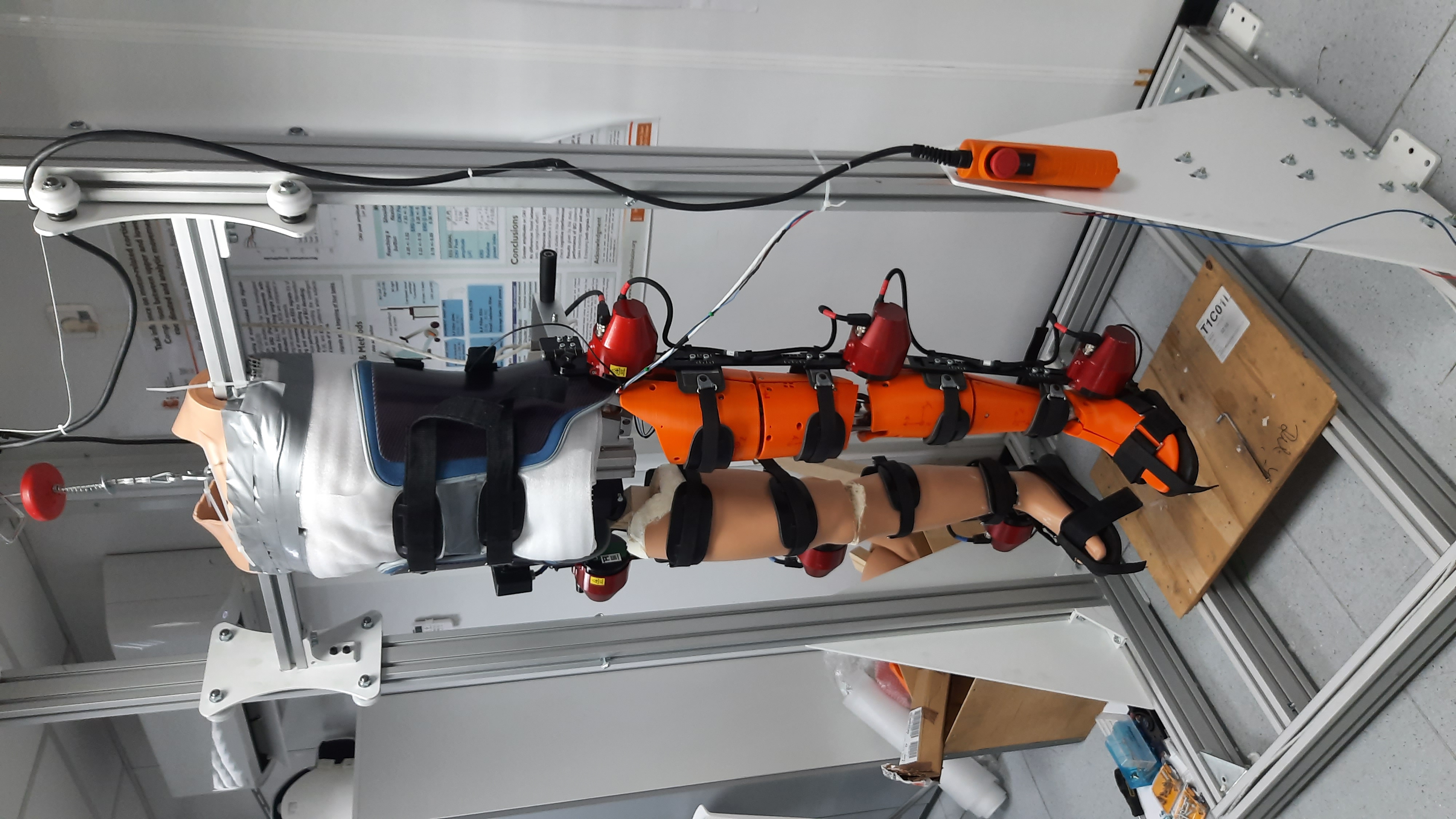 The leg replica was used to evaluate the active H3 exoskeleton in the shown setup.