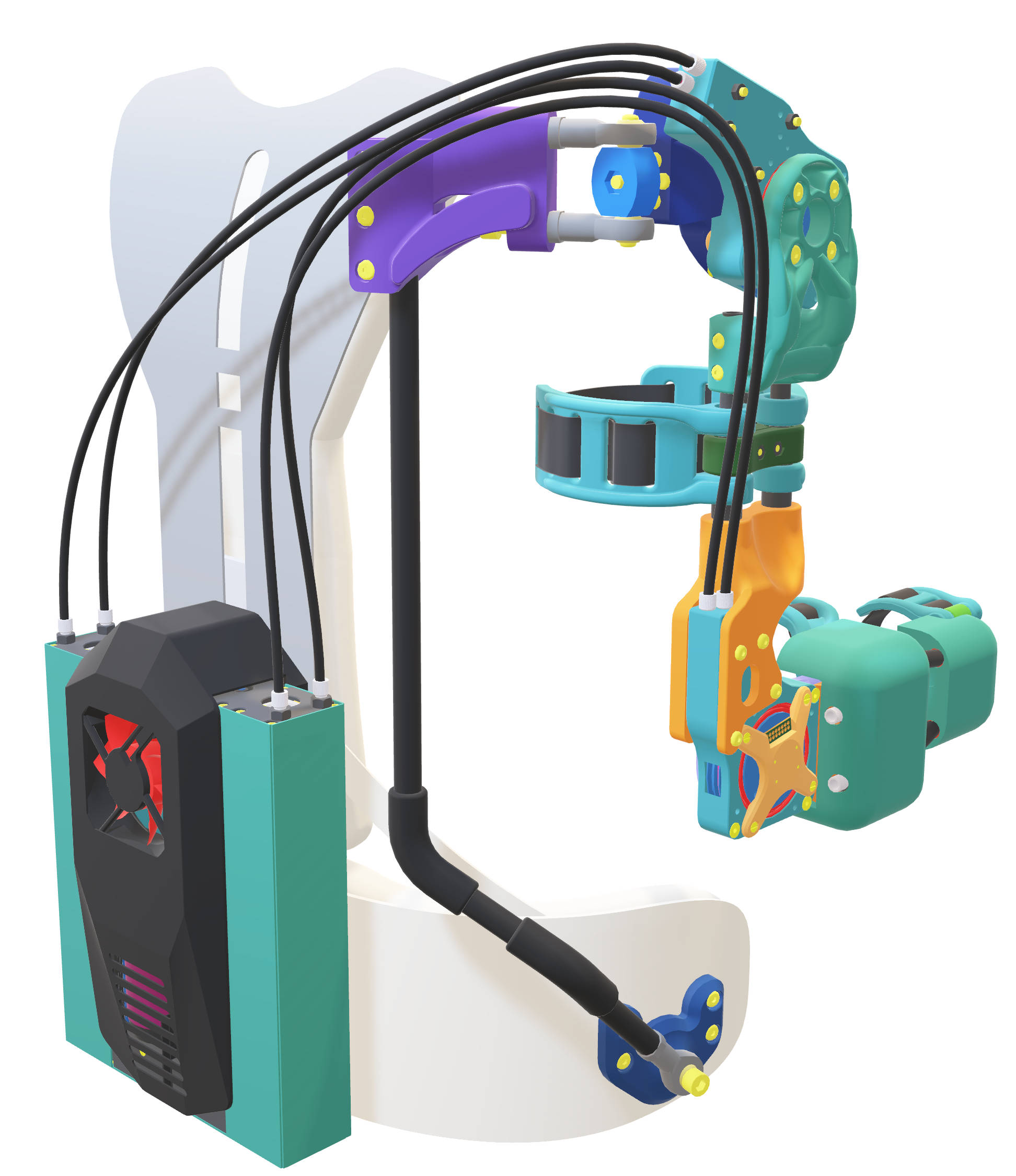 A view of the CAD of the quasi-passive exoskeleton.